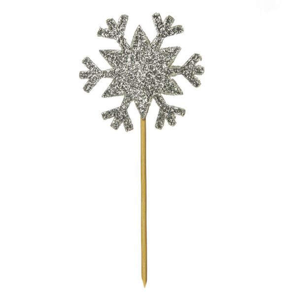 Kaksipuoliset cocktailitikut glitter-lumihiutaleella. Lisää talvi- tai joulutunnelmaa leivonnaisiin näillä koristetikuilla!