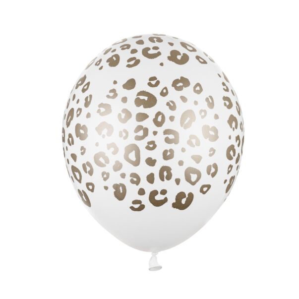 Valkoiset ilmapallot pantteri-kuviolla.