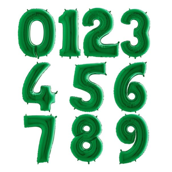 Vihreät numerofoliopallot 0-9. Valitse haluamasi numeron.
