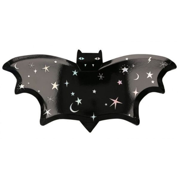 Meri Merin lepakkolautaset ovat loistava tapa saada Halloween-juhlapöytäsi näyttämään upealta. Niiden hopeanväriset hologrammifolio-yksityiskohdat tuovat juhliin hohtoa ja kiiltoa.