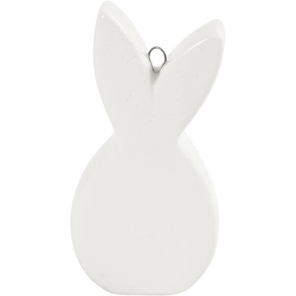 Valkoinen keraaminen koriste pupun pään muodossa. Sopii mainiosti sellaisenaan esim. pääsiäiskoristeeksi. Esineen voi myös maalata posliini- tai lasiväreillä, mikä luo hauskan askarteluhetken! Ripusta valmis koriste ylös metallisilmukan avulla.