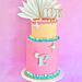 Ihanan iloinen strösselisekoitus! Valkoisen ja vaaleanpunaisen unelma, kirkkaan keltaisia karkkeja ja vaaleanvihreät hohtavia minidonitseja!