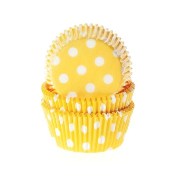 Keltaiset muffinssivuoat valkoisilla pilkuilla, 50 kpl.