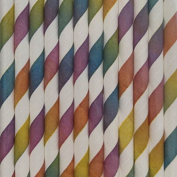 Raidalliset moniväriset paperipillit.