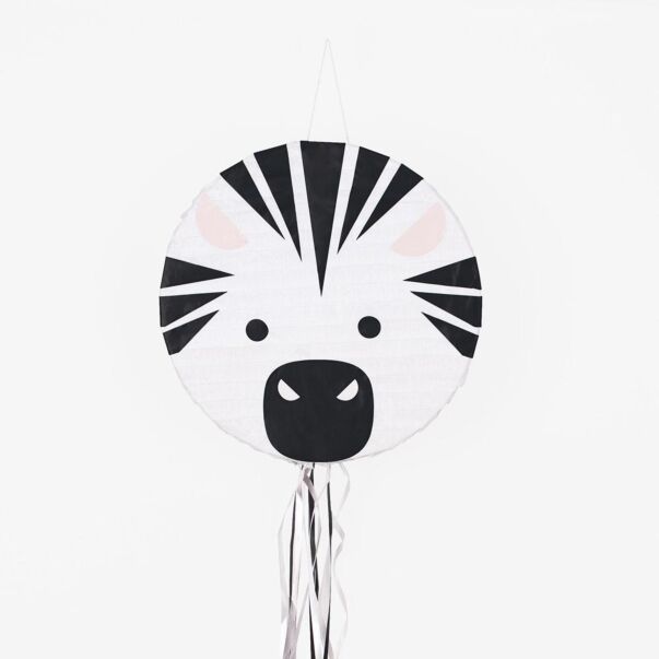 Suloinen seepra pinjata. Täytä pinjata pienillä yllätyksillä (herkuilla tai pienillä leluilla), ei sisälly. Vedä naruista avataksesi herkkuluukun! Voit myös lyödä pinjataa kepillä jotta sisältö lentää ulos.