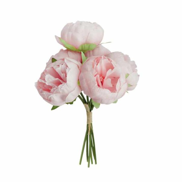 Silkkiset vaaleanpunaiset keinotekoiset pionit. Kukkakimpussa on 6 kukkaa.