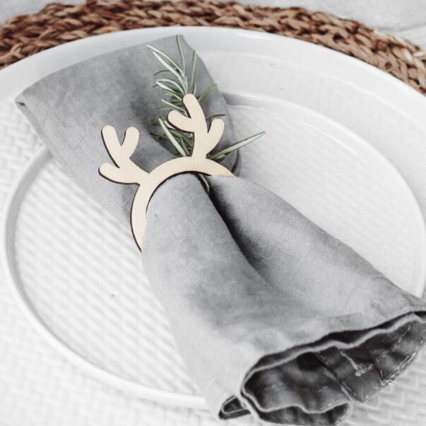 Puiset lautasliinarenkaat poronsarvilla.
