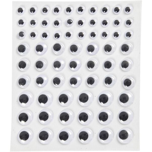 Setti erikokoiset liikkuvat silmät tarrataustalla. Täydelliset askarteluun!