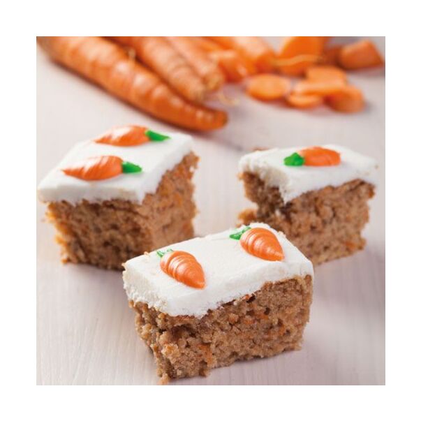 Kivat sokerikoristeet jotka näyttävät porkkanoilta. Koristele pääsiäisleivokset tai porkkanakakun näillä syötävillä koristeilla.
