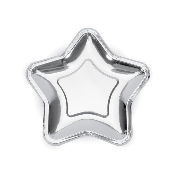 Pakkaus sisältää 6 kpl hopeista tähtilautasta, joiden halkaisija on noin 23 cm.