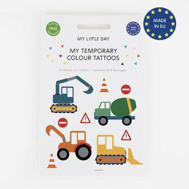 - 8 kpl erilaisia väliaikaisia työkone-tatuointeja