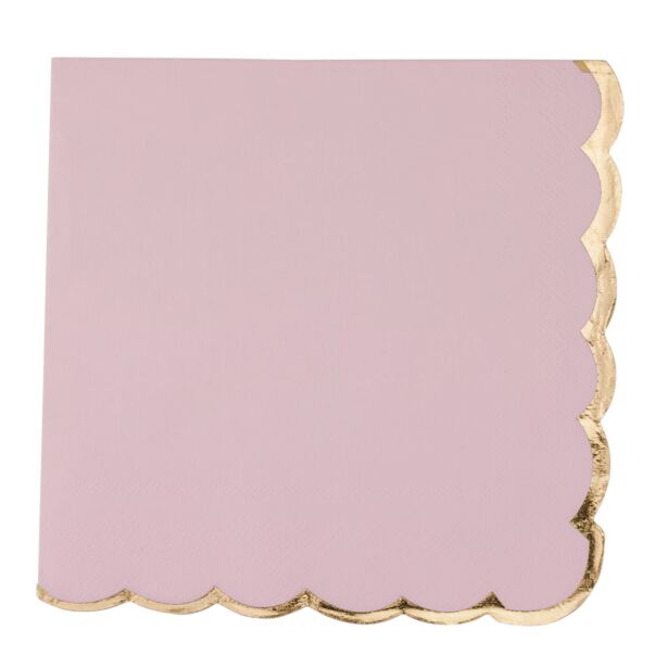 Vaaleanpunaiset lautasliinat - kultainen reuna, 16 kpl